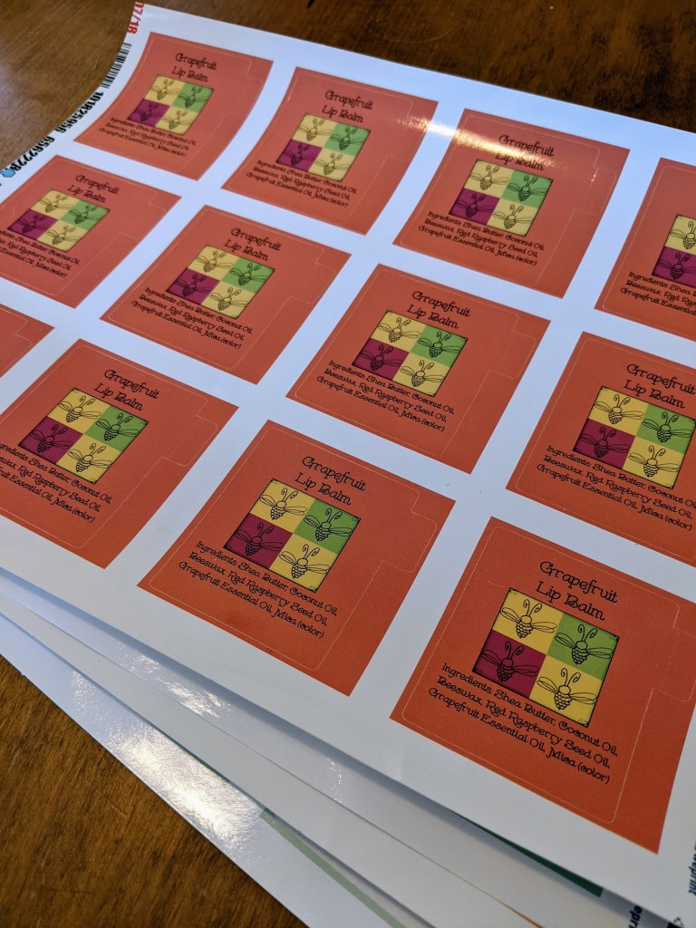 I didn’t use labels for my first few batches of lip balm, but once I knew that balm-making would be an ongoing craft for me, I wanted my finished products to look more polished. The labels also let people know which ingredients you used.
